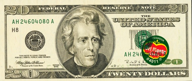 A $20 bill has blown the minds of bidders. The Del Monte banana sticker, well-known among collectors, set a world record in January 2020 at $396,000. That is the highest price ever paid for a banknote with a misprint.